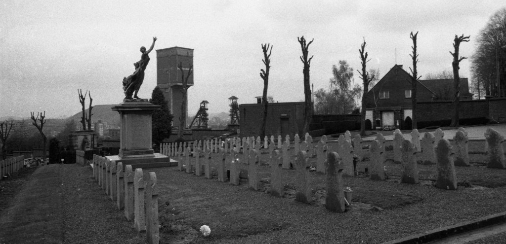 Daar stond ik dan eindelijk bij dat ontroerende beeld op een besneeuwde begraafplaats ten zuiden van Charleroi. Uitdrukking van een groot verdriet: de dood van vele ondergrondse mijnwerkers, die in augustus 1956 omkwamen in de steenkolenmijn le Bois du Cazier. Om mij heen honderden graven en daarbuiten schachten en steenbergen. Terrils heten ze in België. Overal terrils waar je ook kijkt, want dit is ‘le Pays Noir’. De reis begon met geluidloze, zwart-wit beelden op een zomerse dag.
